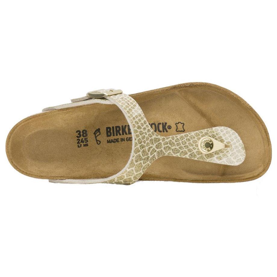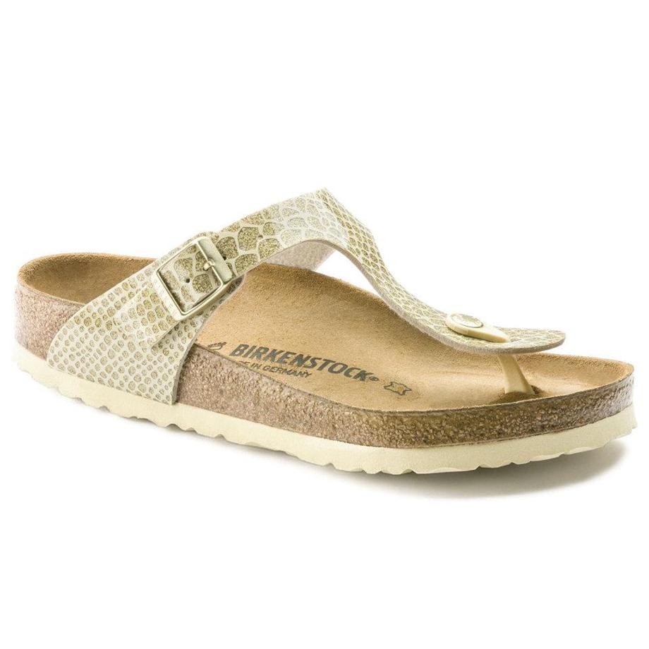 1016108 The modern thong sandal from Birkenstock. Birkenstock gizeh - gold metallic gold upper adjustable metal buckle suede lining anatomical cork footbed rubber sole made in germany notes and sizing runs true to size.